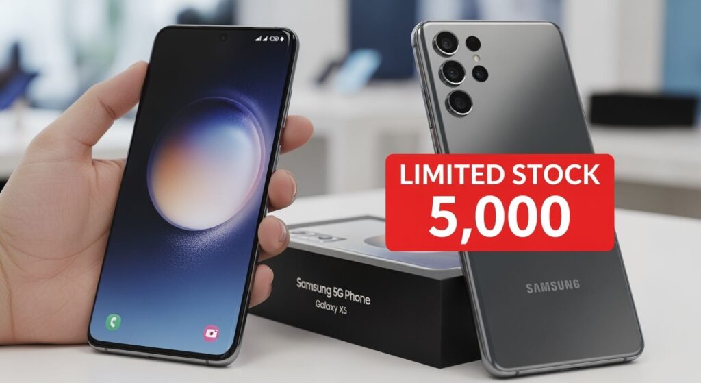 Samsung 5G फोन: मैं आज आपके लिए एक शानदार खबर लेकर आया हूँ! Samsung ने अपने 5G स्मार्टफोन पर एक धमाकेदार ऑफर निकाला है। झकास डील: Samsung 5G फोन @ ₹5,999 + Free Smartwatch — लिमिटेड स्टॉक 5,000। यह ऑफर सीमित समय के लिए है और केवल 5,000 यूनिट्स ही उपलब्ध हैं। क्या आप भी इस मौके को हाथ से जाने देंगे?
